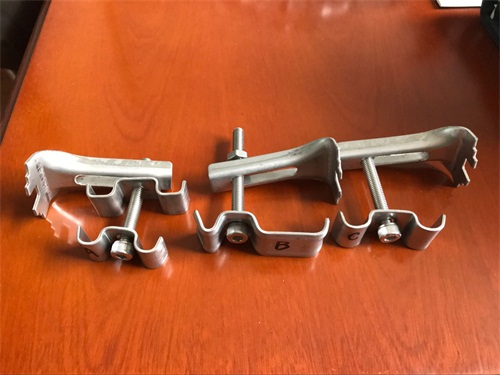 A型:由一塊帶雙鉤的上壓板,一塊帶齒的下壓板和一支M8的內(nèi)六角螺栓組成。